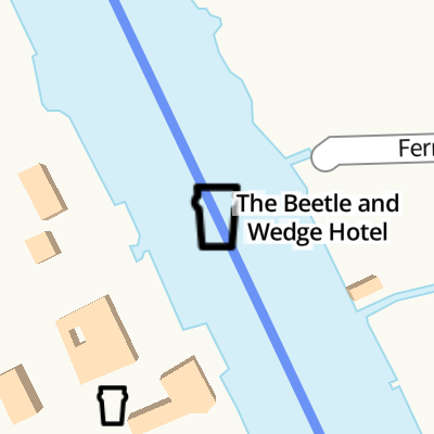 The Beetle and Wedge Hotel is a minor waterways place on the River Thames (below Oxford) between Wallingford Bridge (Wallingford town centre) (3 miles and 7¼ furlongs to the northeast) and Goring Lock (Goring and Streatley villages and bridge) (1 mile and 7¼ furlongs and 1 lock to the south).
