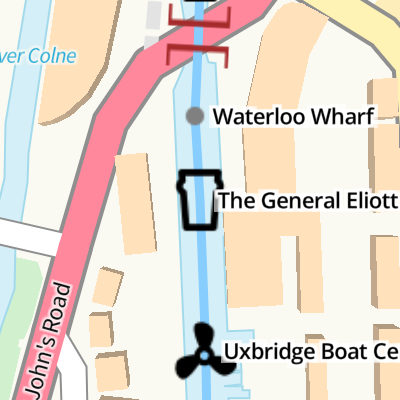 The General Eliott PH is on the Grand Union Canal (Grand Junction Canal - Main Line - Gayton to Brentford) just past the junction with The Gloucester and Sharpness Canal.