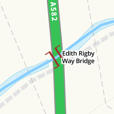 Edith Rigby Way Bridge carries a footpath over the River Ribble (Ribble Link) just past the junction with Sir Charles Green's Canal.