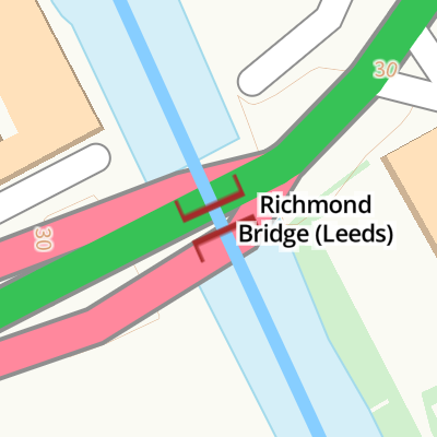Richmond Bridge (Leeds) carries the road from Colchester to Warrington over the Aire and Calder Navigation (Main Line - Castleford to Leeds) just past the junction with The Melton Mowbray Navigation.