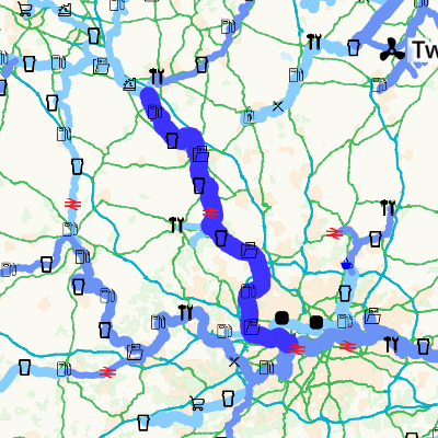 | Brentford Visitor Moorings | 75 miles and 7 furlongs | 87 locks | |