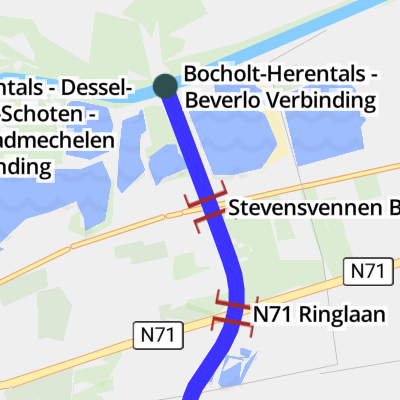 The navigational authority for this waterway is De Vlaamse Waterweg NV| Bocholt-Herentals - Beverlo Verbinding Junction of the Kanaal Bocholt-Herentals with the Kanaal narr Beverlo |