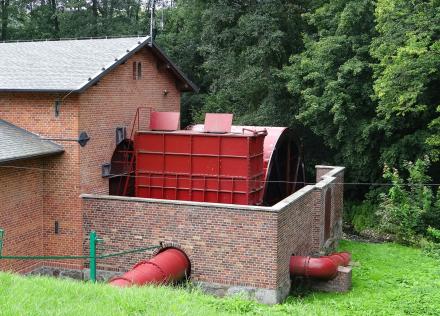 Viewed from the canal bank and also showing the flow control linkage painted green.
