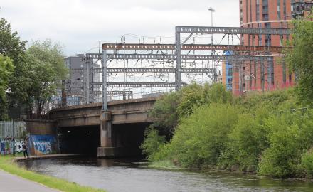 This bridge carries the railway lines and support structures for all trains arriving and departing Leeds City Station.