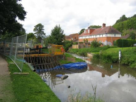 During renovation. The River Salwarp flows to the right, the Droitwich Barge Canal to the left through the lock.