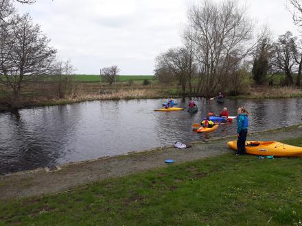 The moorings are behind the photographer. The expanse of the winding hole is used to effect by the local watersports groups.