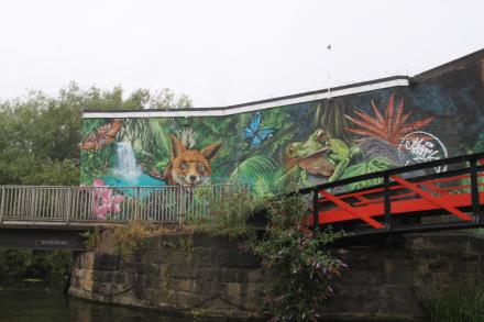 A vivid contribution to the "Is it art or graffiti?" debate. The picture is probably preferable to the wall as it was in Photo 2 - just unfortunate that it's been 'tagged' as well