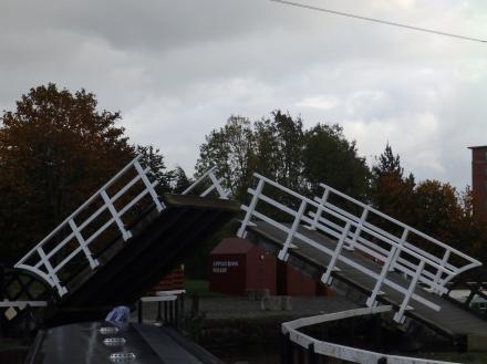 Boat heading for Glasgow through raised bascules