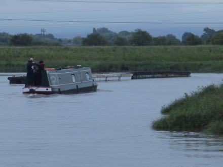 Heading downriver with part of pontoon disconnected ...