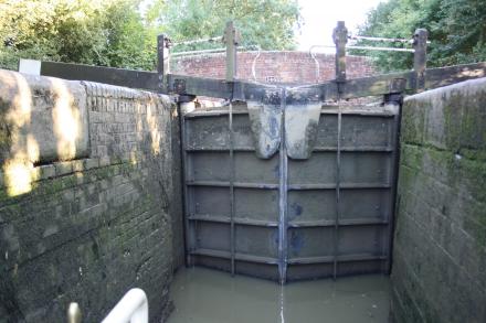 Unusually, this lock has metal gates. I believe that the other side is clad in wood.