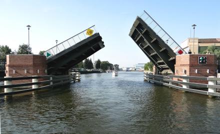 The bridge remains open behind us to allow the waiting yacht to follow us through.