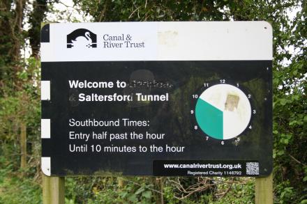 This tunnel is timed. There is a similar notice at the other end, but half an hour difference.