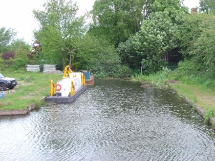 The wing walls of the lock start at the end of the water. The lock is buried in the front gardens of the two lock cottages.