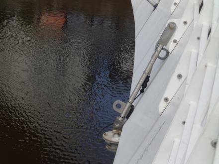 As the bridge raises, the light fitting hangs vertically downwards
