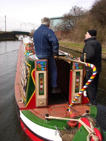 Martin Reed steers Oak, while Ash is on cross straps. Just about to go under Albion Railway Bridge.
