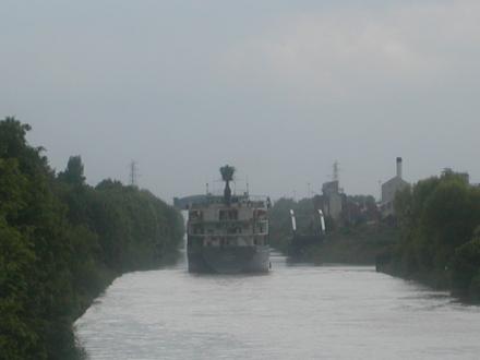 Taken from Northwich Road Swing Bridge as ship is heading west towards Eastham Locks. Acton Grange Railway Viaduct is in the background