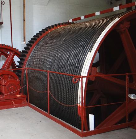 The drum is about 4 metres in diameter and the length of rope stored on the drum remains the same throughout the winding cycle.