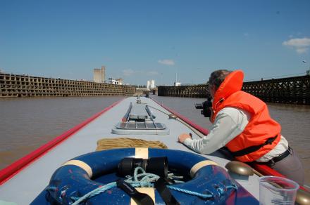 Skippers need to be very aware that the tide may well be flowing sideways through these piers faster than a narrowboat can move!