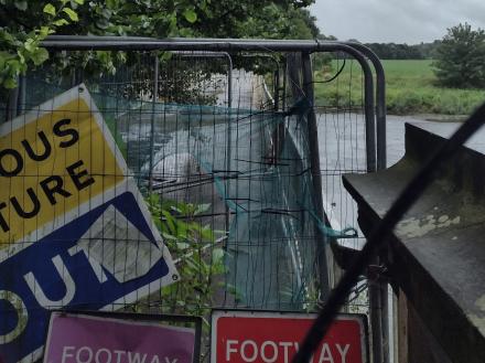 The original timber bridge was replaced with a concrete look-alike in the 1960s; this was closed in February 2019 after an inspection revealed that it might collapse. Funding to replace the bridge was announced in January 2023.