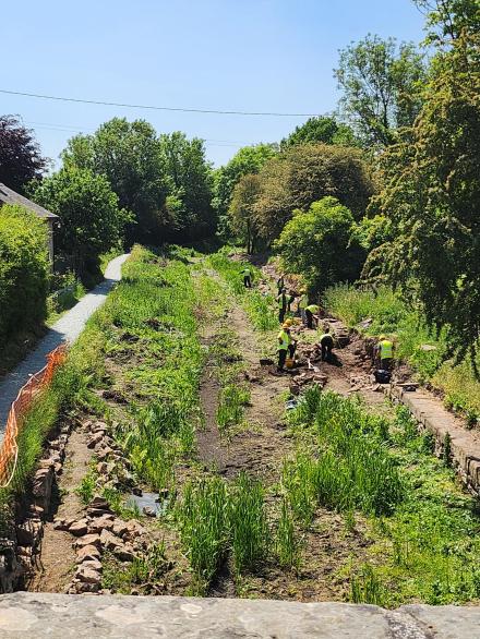 Standing in exactly the same position as the last photo, on top of Bridge 85, this time looking the other way towards Llanymynech. Members of the Shropshire Union Canal Society can be seen working on the stone walls as part of the restoration of this section.
