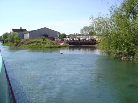 Yard of Dewsbury & Proud Crane Hire backs on to this winding hole.