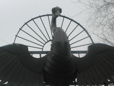 The towpath and bridges between Hawkesbury and Coventry city centre have a number of works of art. For the boater this is the first that is encountered, passing under this footbridge.