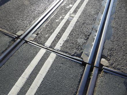 The double-white lines identify it as a road ... The parallel rails identify it as a railway ... The metal arc identifies it as a swingbridge ...
