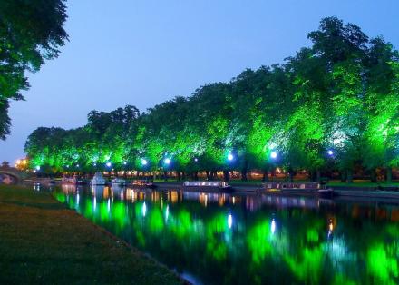Moorage in Evesham between the Workman and Abbey Bridges is quiet and well lit.
