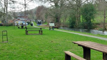 Attractive picnic area between VM's (behind camera) and Locks (ahead)