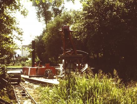 Slide processed July 1976. Steam Dredger Perseverance west of Swan Bridge N Warnborough