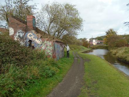 This section of canal has a number of metal sculptures to illustrate key features on the canal. A life-size person has been positioned next to the toll stop to represent the toll man and provide information about his role.