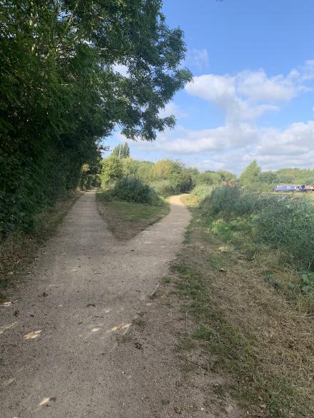 The old line of the canal pre-restoration can clearly be seen to the left where the old towpath forms a footpath