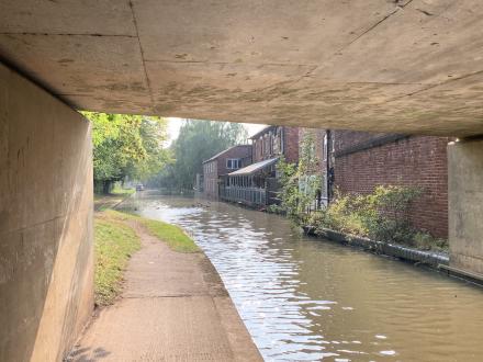 View of the pub looking towards Hanbury from under the bridge