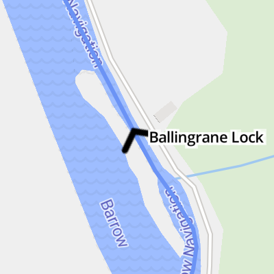 Ballingrane Lock is a minor waterways place on the Barrow Navigation (Non - Tidal Section) between Grand - Barrow Junction (Junction of the Grand Canal (Barrow Line) with the River Barrow ) (34 miles and 3¼ furlongs and 16 locks to the north) and Ferrymountgarrett Lift Bridge (15 miles and 4¾ furlongs and 7 locks to the south).