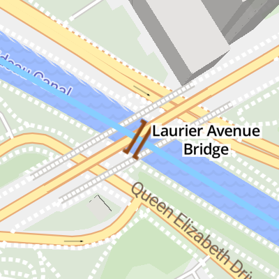 Laurier Avenue Bridge carries a footpath over the Rideau Canal (Main Line).