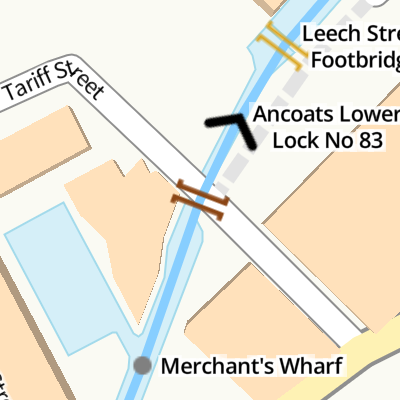 Travel to Castlefield Junction, then on the Bridgewater Canal (Main Line) to Grocer's Wharf