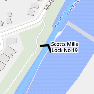Scotts Mills Lock No 19 is a minor waterways place on the Trent-Severn Waterway (Main Line) between Murray Canal (eastern entrance) (88.69 miles and 18 locks to the east) and Trent-Severn - Scugog Junction (Junction of the Trent-Severn Waterway and the access to Lake Scugog) (59.33 miles and 12 locks to the northwest).