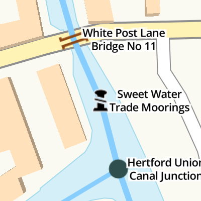 Travel to Hertford Union Canal Junction, then on the Grand Union Canal (Hertford Union Canal) to Hertford Union Junction, then on the Grand Union Canal (Regent's Canal) to Little Venice, then on the Grand Union Canal (Paddington Branch) to Greenford WharfNearest chemical toilet disposal