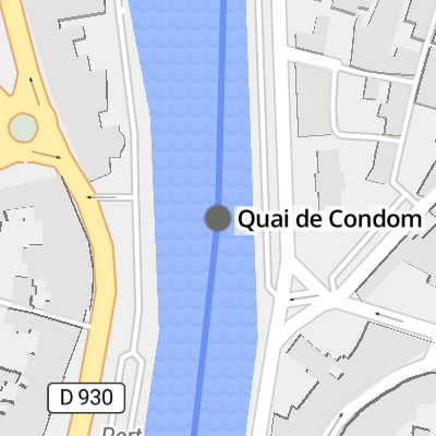Quai de Condom is a town on the River Baïse between Valance-sur-Baise (10.45 kilometres and 4 locks to the south) and Moncrabeau (11.48 kilometres and 3 locks to the north).