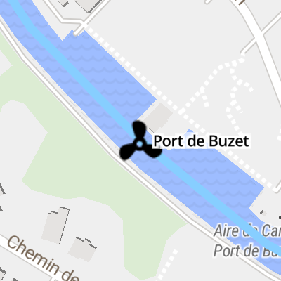 Port de Buzet is a place on the waterways on the Canal de Garonne - (Main line) between Villeton (13.03 kilometres and 2 locks to the north) and Garonne - Baïse Jonction (Junction of the Canal de Garonne and the River Baïse) (0.26 kilometres to the southeast).