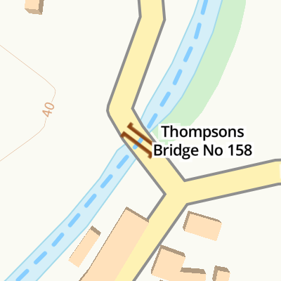 These two large stone culverts survive in this area. The bridge now known as Thompsons bridge has a recent deck atop coursed rubble abutments and wing