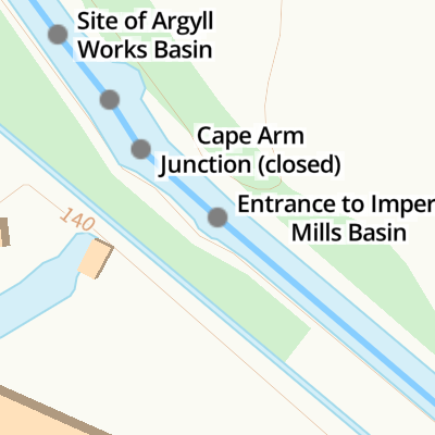 Travel to Deep Cuttings Junction, then on the Birmingham Canal Navigations (Newhall Branch) to Farmers Bridge Junction, then on the Birmingham Canal Navigations (Birmingham and Fazeley Canal - Main Line) to Minworth Services
