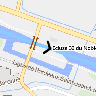 Ecluse 32 du Noble is a minor waterways place on the Canal de Garonne - (Main line) between Quai de Sérignac-sur-Garonne (25.58 kilometres and 5 locks to the west) and Golfech (8.85 kilometres and 1 lock to the east).