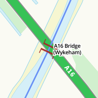 A16 Bridge (Wykeham) carries the road from Salisbury to Aberdeen over the River Welland (Main Line).