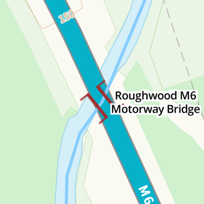 Roughwood M6 Motorway Bridge carries the road from Barnsley to Willley over the Birmingham Canal Navigations (Wyrley and Essington Canal) just past the junction with The River Bolton Navigation.