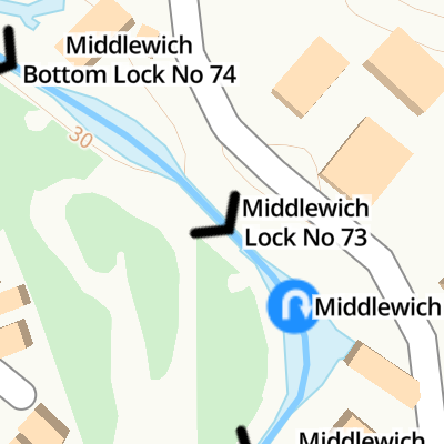 The Trent and Mersey Canal is a 93 1⁄2-mile (150 km) canal in Derbyshire, Staffordshire and ... Middlewich Lock No 73. Middlewich Top ... "Stoppage: Between Middlewich Big Lock 75 and Lodge Lane, Bridge 213 Preston Brook". Waterscape.