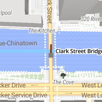 Clark Street Bridge carries a footpath over the Illinois Waterway (Chicago River).