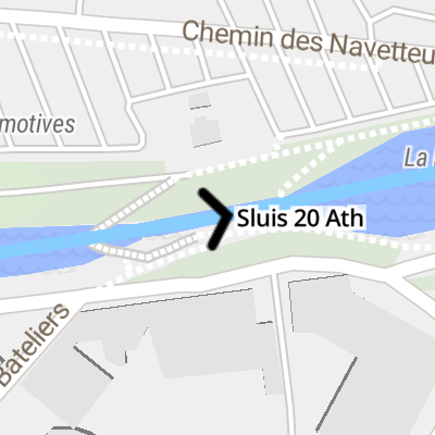 Sluis 20 Ath is a minor waterways place on the Kanaal Blaton-Ath between Nimy-Blaton-Peronnes - Blaton-Ath Verbinding (Junction of the Kanaal Nimy-Blaton-Peronnes with the Kanaal Blaton-Ath. The junction of the Old line of the Kanaal Nimy-Blaton-Peronnes also joins here.) (19.96 kilometres and 19 locks to the southwest) and Sluis Bilhee (2.25 kilometres and 1 lock to the north).