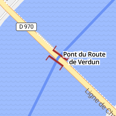 Pont du Route de Verdun carries the road from Maidenhead to Runington over the River Saône (Main Line).