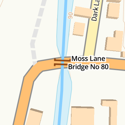 This is Bridge No.80, carrying Moss Lane (B6229 road) over the Leeds and Liverpool Canal. It is in stone and consists of a single elliptical arch, and has ...